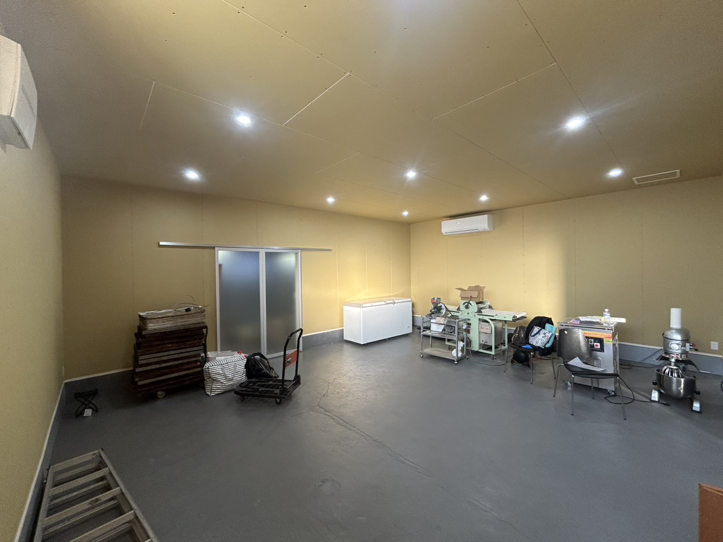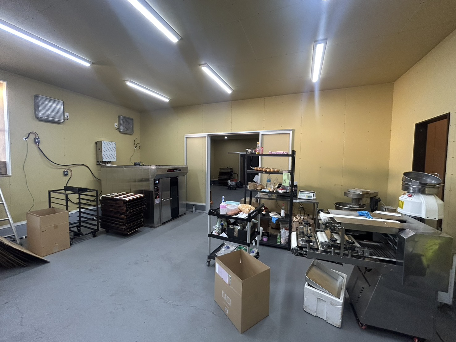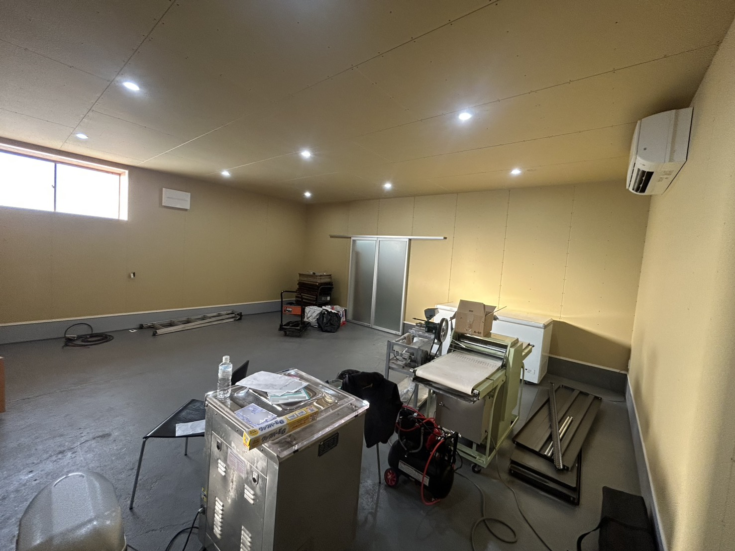 本工事では、既存内装を撤去したスケルトン状態から施工を行い、パン製造工場として使用される空間の改装に対応しました。